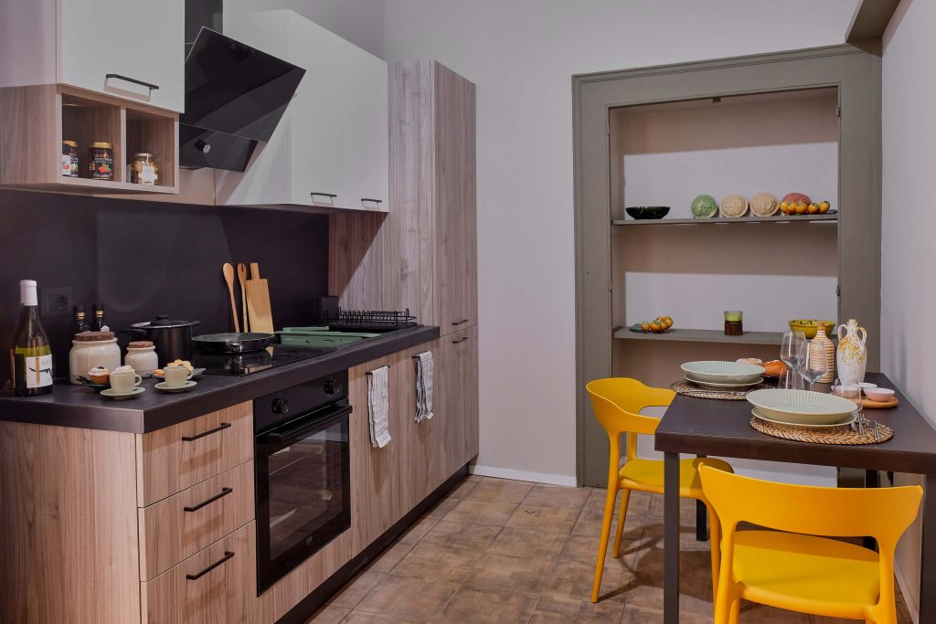 Spazi funzionali pensati per sentirsi a casa, con cucina a disposizione e comfort moderni integrati nella storia.